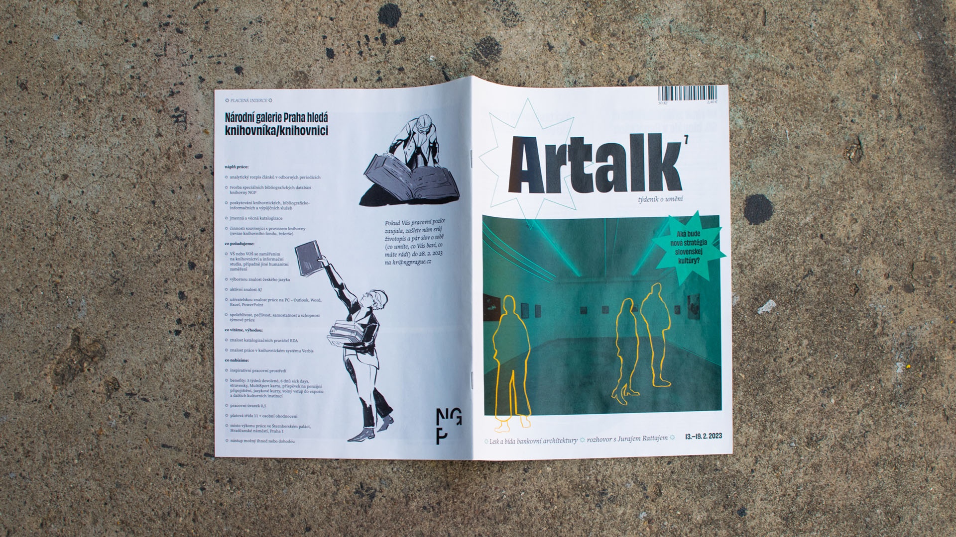 Artalk is a Czech and Slovak web-based magazine about contemporary visual art. In addition to publishing texts, it organises discussions, produces podcasts and publishes Artalk Revue. As a fictional class assignment, we were paired up with Illustrators and tasked to translate the online magazine into a print version.