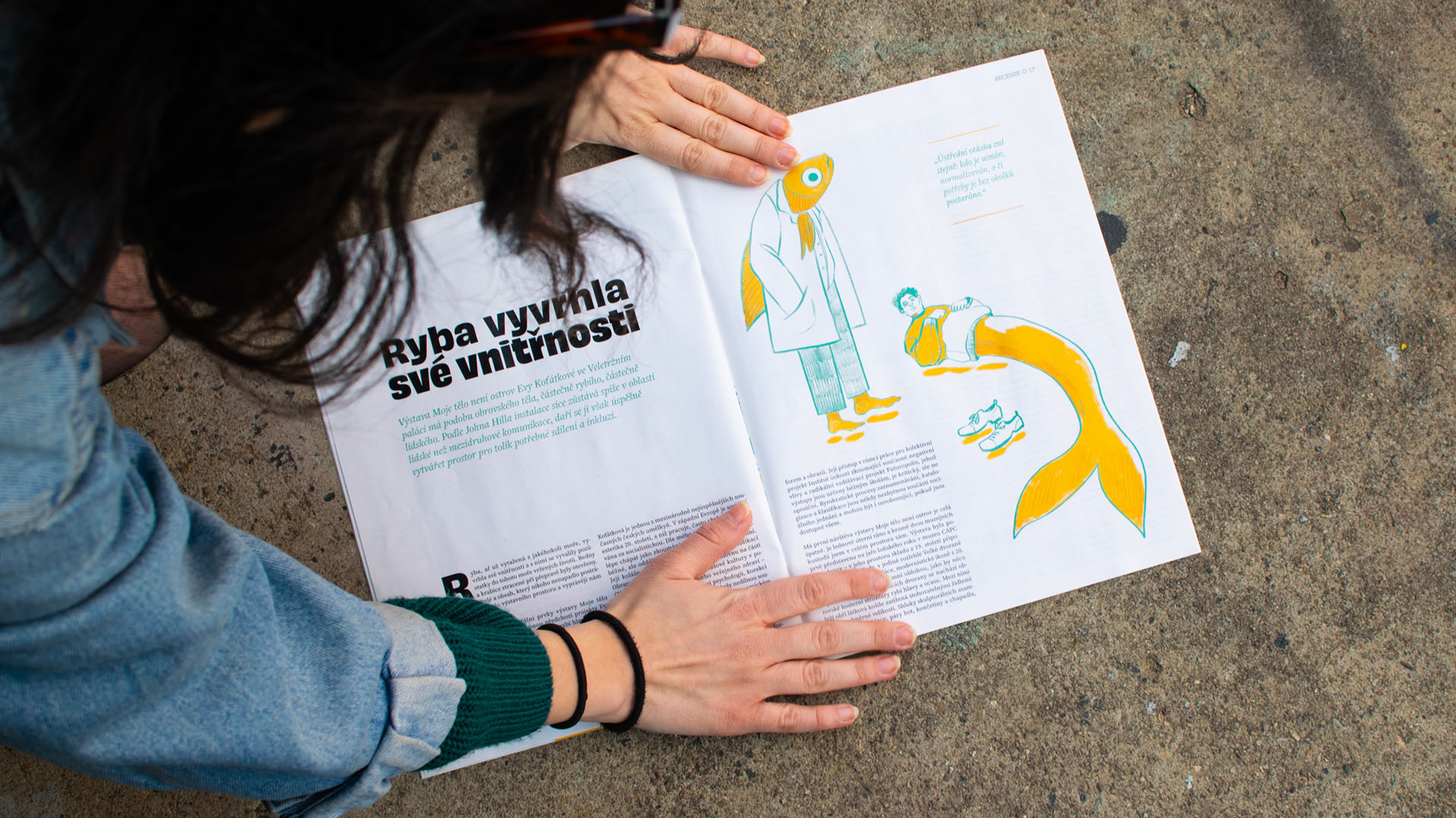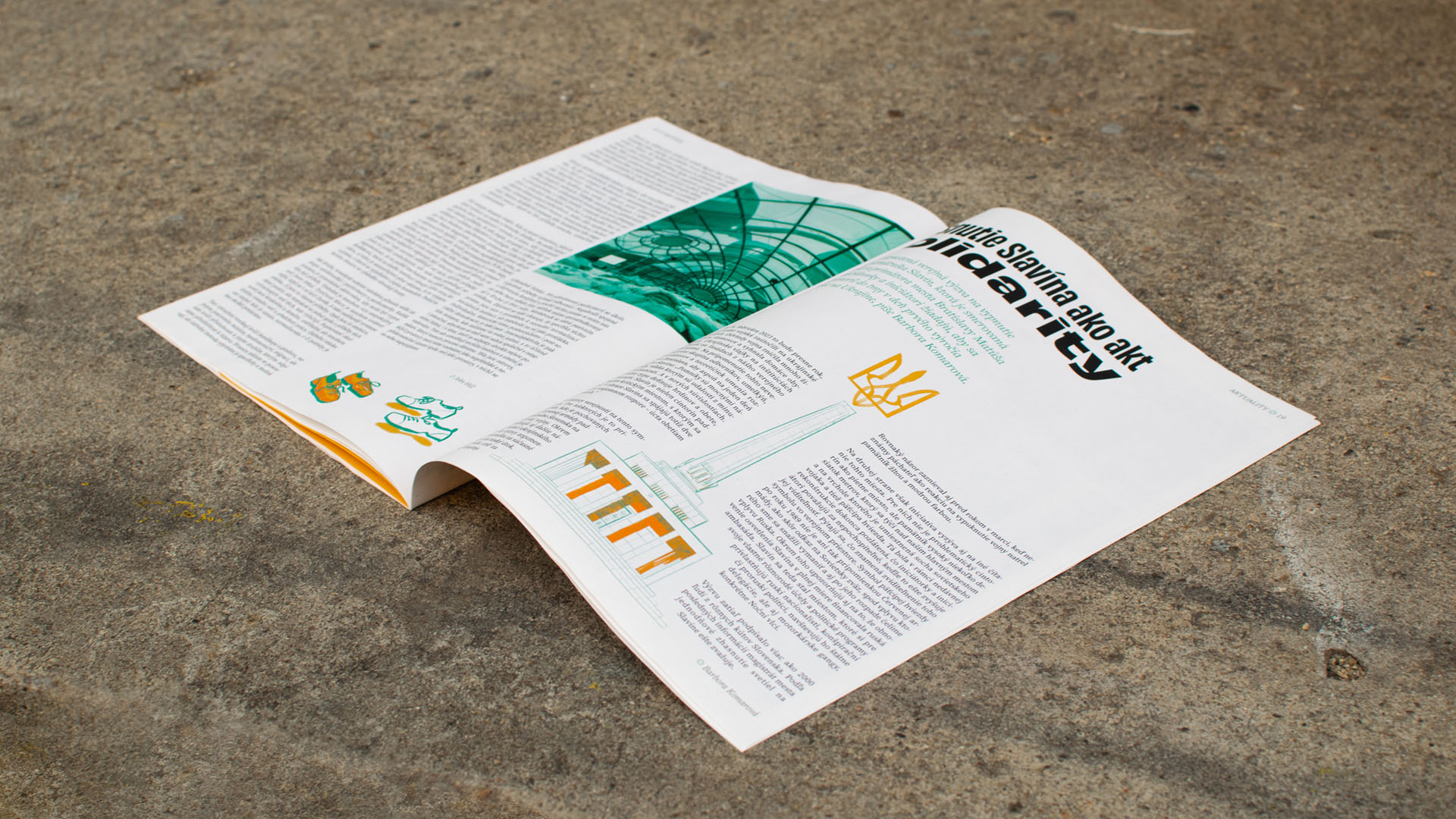 The project utilises bold colours and playful illustrations in active conversation with the articles themselves. The headlines are set with an extra bold variable font, which stretches to fill out the full text block width and adds a sense of variety and liveliness. The magazine also provides a tear-out weekly calendar of cultural events in Prague and Bratislava.