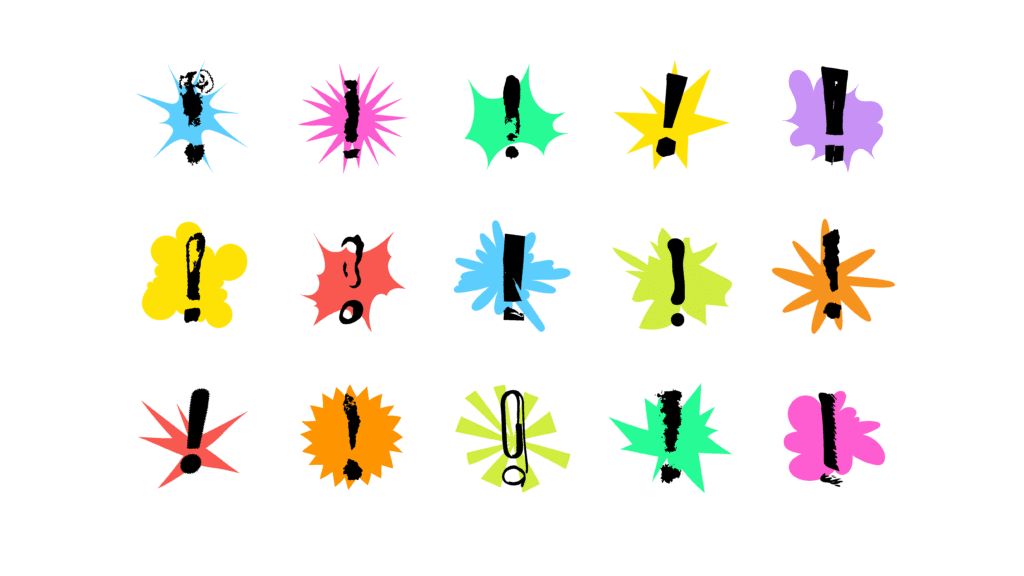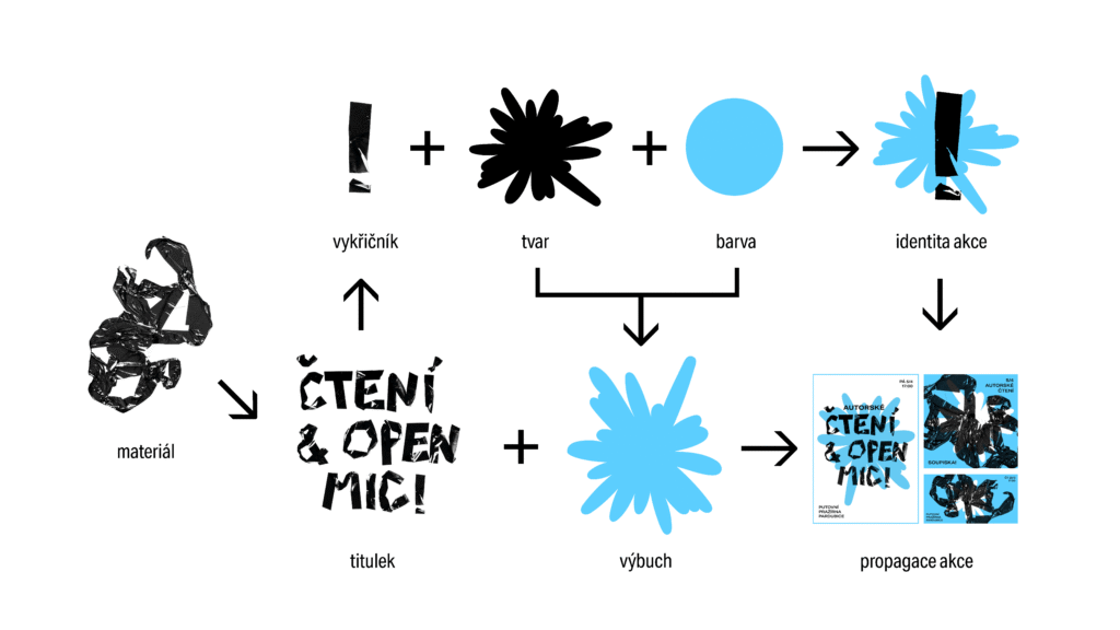 Each event is given three elements – colour, a vector explosion, and an analogue technique through which a title and “material explosion” is created. The logo does not have one specific form or basic variant. It is created by combining a depiction of an explosion supplemented with an exclamation mark in any form.